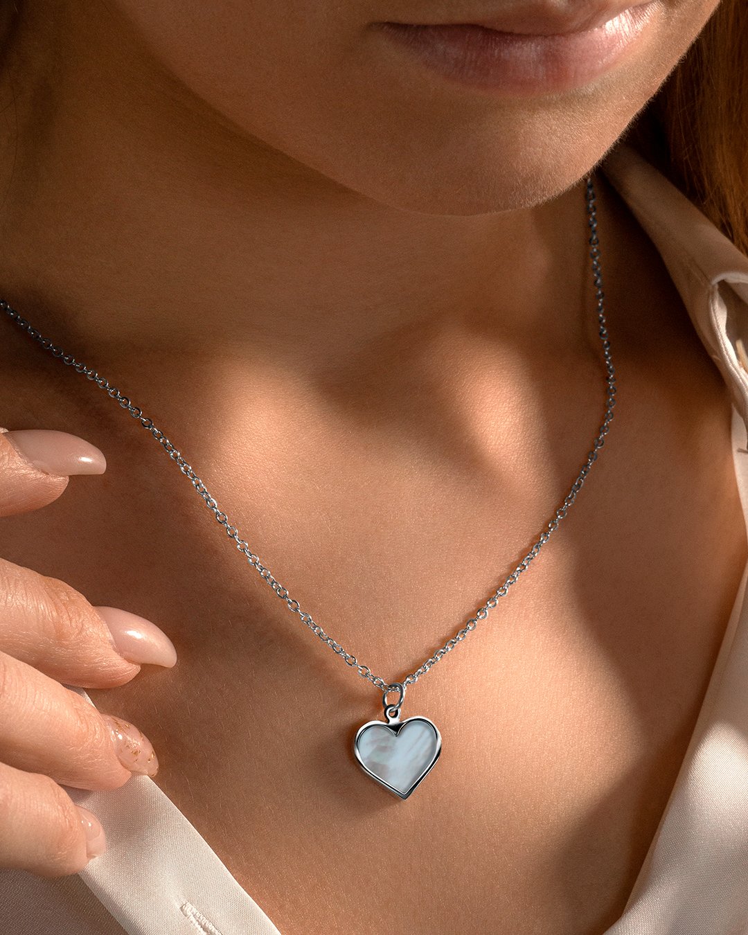 Der Anhänger Cuorettio ist aus Edelstahl und wird von einem perlmuttfarbenen Schmuckschild begleitet.