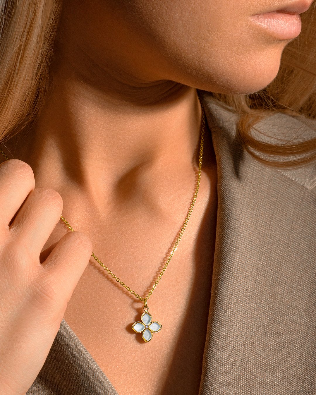 Das Perlmutt des Medaillons passt dank seiner vielen Farbvariationen perfekt zu Ihrer gesamten Garderobe.