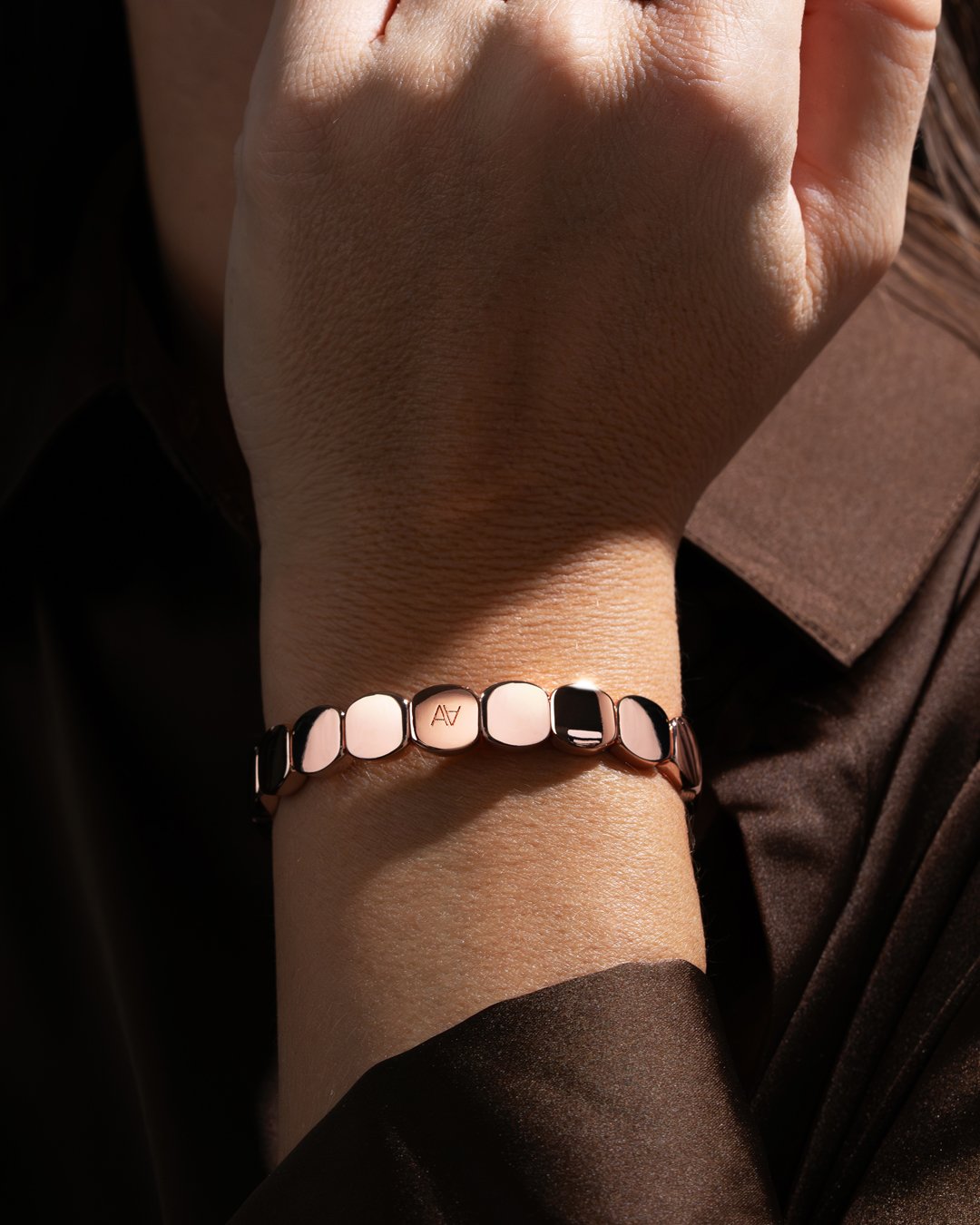 In zwei Größen erhältlich, passt sich das Armband jeder Silhouette an und ergänzt sowohl den Alltagslook als auch ein elegantes Abendoutfit.
