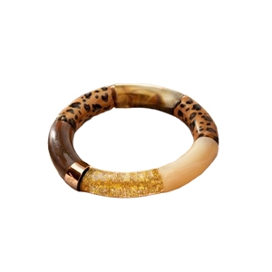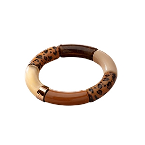 Das Armband besteht aus edlen Elementen in einer Farbe Beige marmoriert, Transparentes Leopardenbraun, Aprikosenbeige matt, Beige marmoriert dunkel, Lachsfarben marmoriert dunkel.