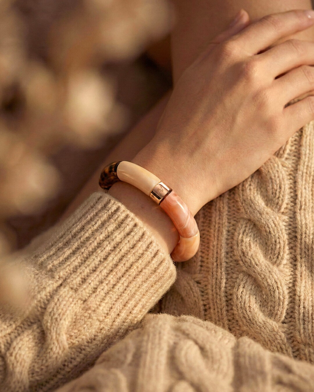 Lassen Sie sich von diesem handgefertigten Acetat-Armband verführen – Symbol für erschwinglichen Luxus und verantwortungsvolle Mode.