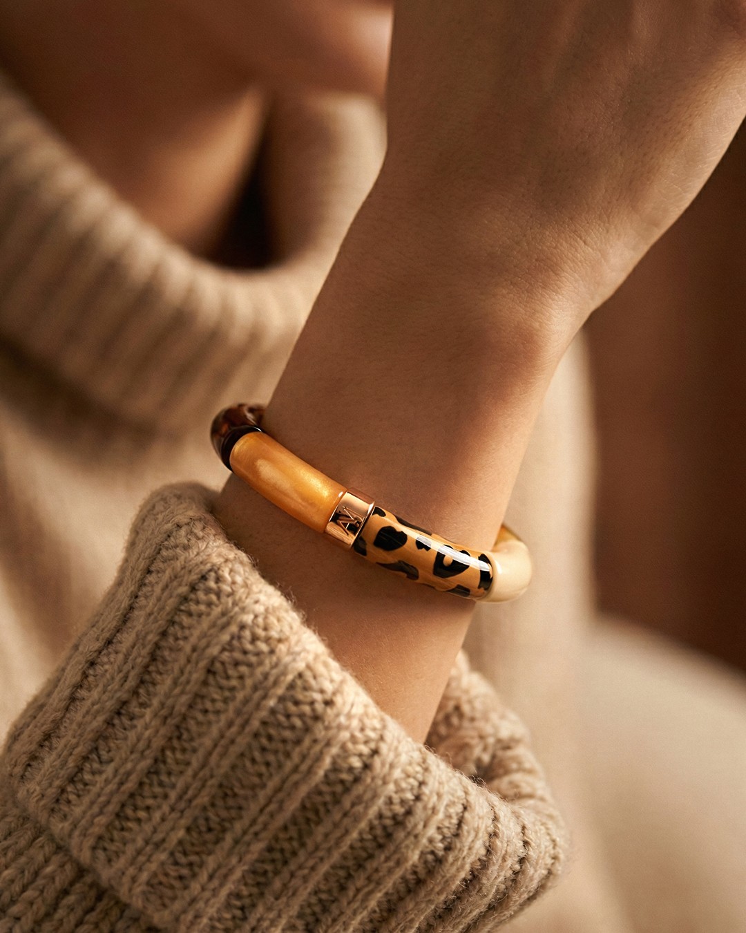 Lassen Sie sich von diesem handgefertigten Acetat-Armband verführen – Symbol für erschwinglichen Luxus und verantwortungsvolle Mode.