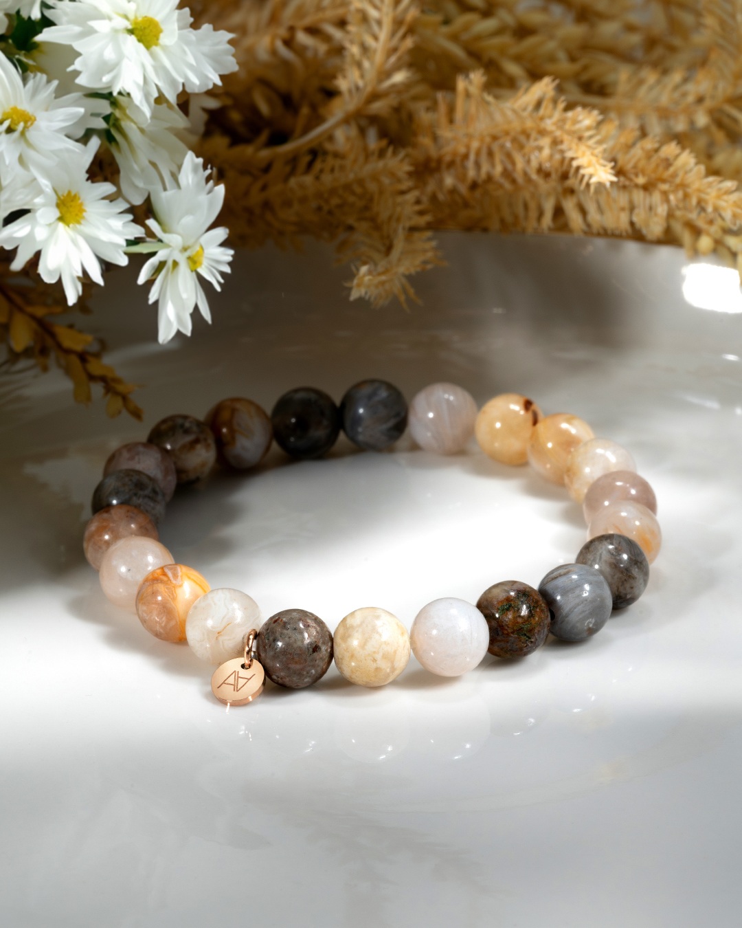 Unsere Schmuckstücke bestehen aus natürlichen Steinen, daher sind alle einzigartig. Abweichungen in Größe und Farbnuancen können je nach Modell auftreten, was jeden Stein zu einem Unikat macht. Die Anzahl der Steine kann von Armband zu Armband variieren.