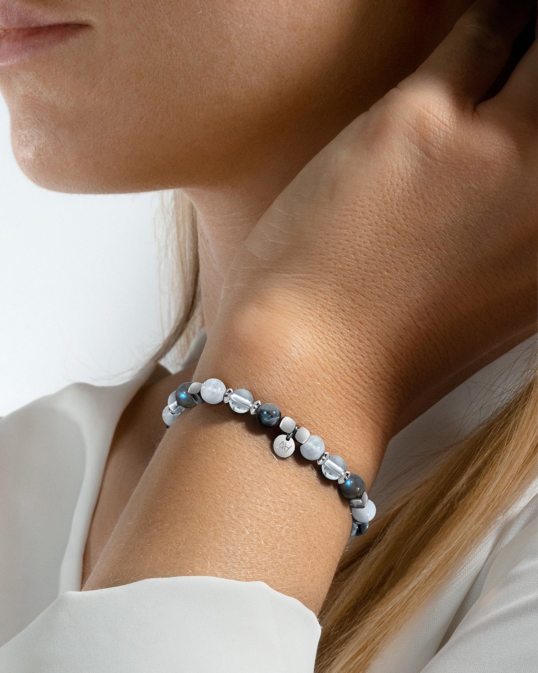 Dieses Armband kombiniert Mondstein, Bergkristall und Labradorit und ist ein energischer Edelstein. Diese drei Steine wurden aufgrund ihrer einzigartigen und sich ergänzenden Eigenschaften ausgewählt und bilden ein Netzwerk lebendiger Energien, welche die Seele im Alltag begleiten.