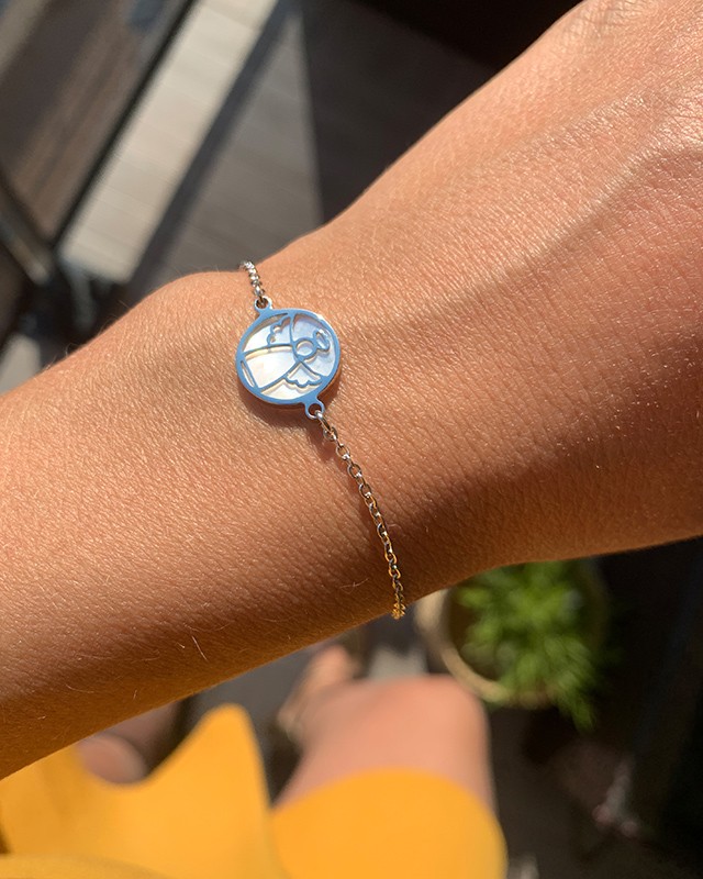 Dieses Schmuckstück präsentiert einen Engel. Es symbolisiert die Perfektion, die Güte sowie den göttlichen Schutz. Das mit Perlmutt verzierte Schmuckschild reflektiert perfekt die Sonnenstrahlen und lässt Ihr Handgelenk strahlen.