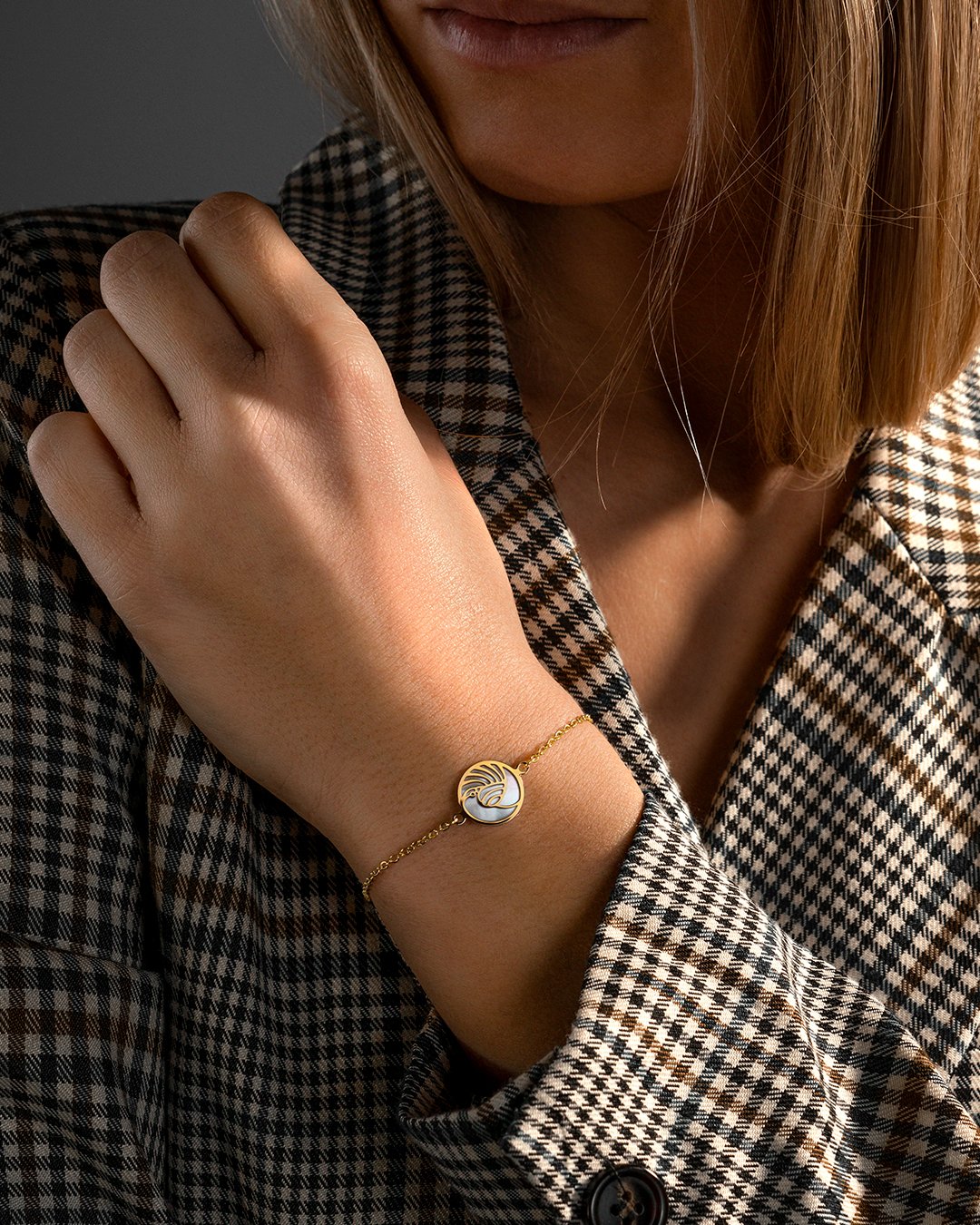 Das Colombetti Doro Armband besteht aus einem Perlmuttstück und einer vergoldeten Edelstahlkette.