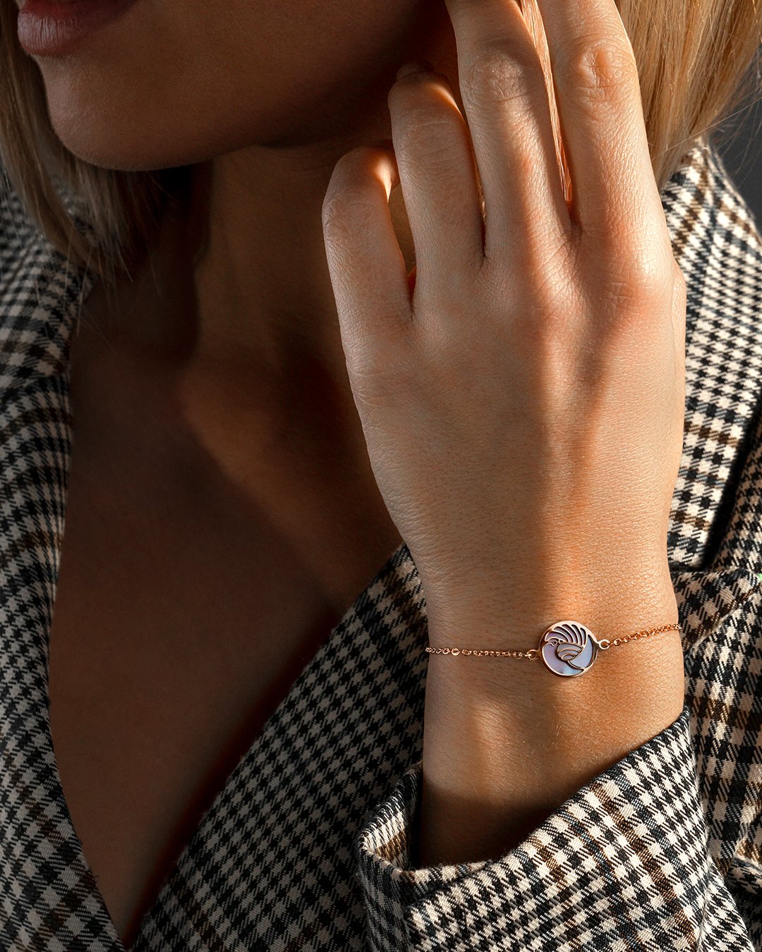 Das Armband Colombetti Rosa besteht aus einem Perlmuttstück, das von einer Kette aus roséfarbenem Edelstahl begleitet wird.