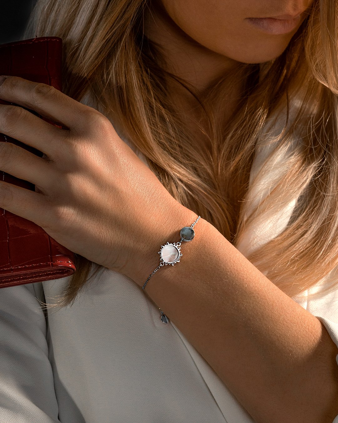 Mit einer Länge von 16 cm und einer bis zu 4 cm verstellbaren Kette passt er sich mit einer Gesamtlänge von 20 cm problemlos an jedes Handgelenk an.