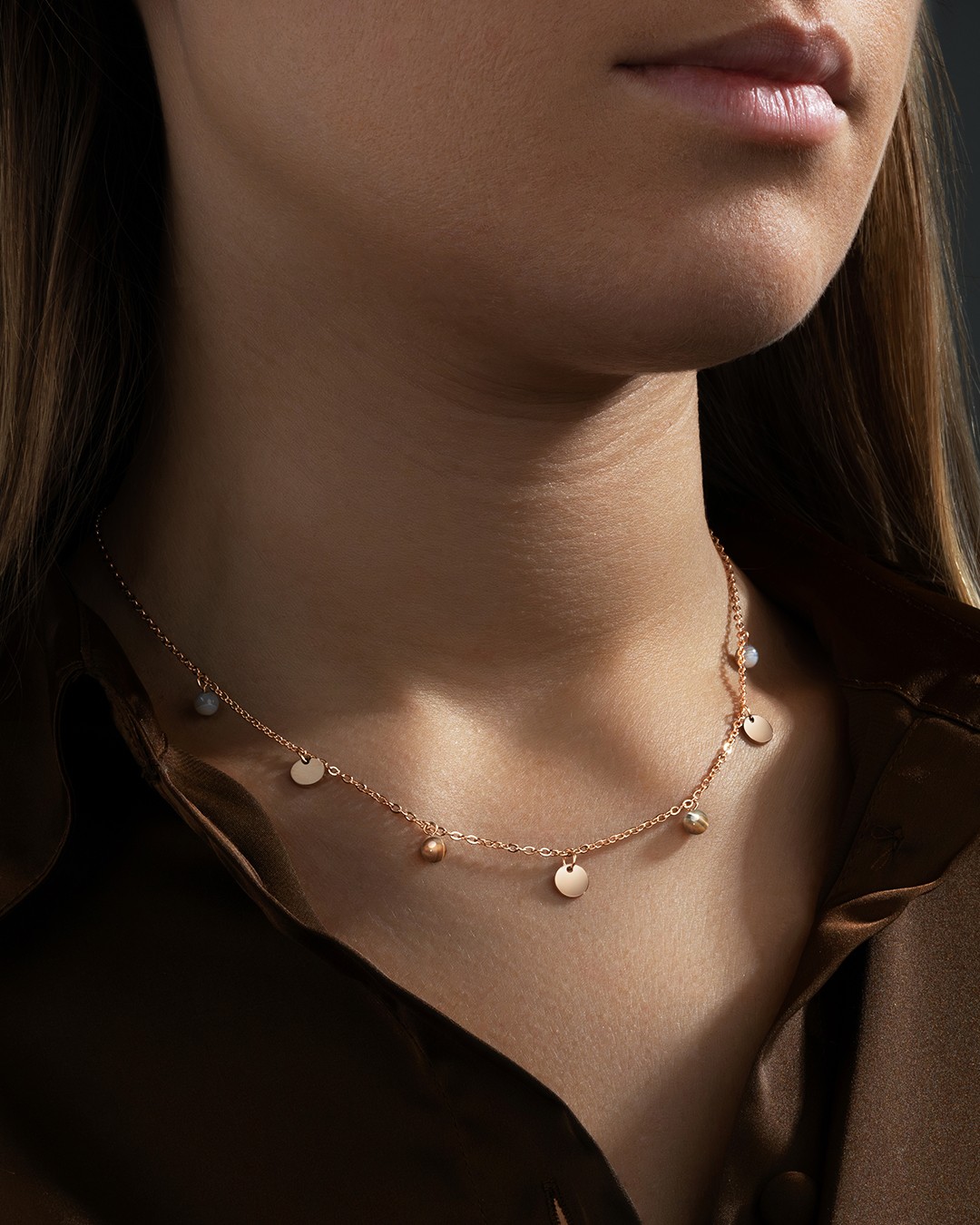 Die Halskette Avellinotto ist aus rosévergoldeten Edelstahl gefertigt und mit 4 wunderschönen Achatsteinen aus Botswana verziert, die sorgfältig zwischen den von Anna Velazia signierten Anhängern angeordnet sind. Mit einer Länge von 48 cm und einem verstellbaren Teil von 6,5 cm passt sich dieses Halsband leicht Ihrem Halsumfang an. In der Steinheilkunde wird der Botswana-Achat wegen seiner wohltuenden Wirkung auf das emotionale Wohlbefinden geschätzt. Diesem Stein wird die Fähigkeit zugeschrieben, das Gefühl von Glück und Zufriedenheit zu verstärken. Unsere Schmuckstücke bestehen aus Natursteinen und sind daher alle unterschiedlich. Daher können je nach Modell Unterschiede in Größe und Farbnuancen auftreten. Diese Unterschiede machen jeden Stein einzigartig.