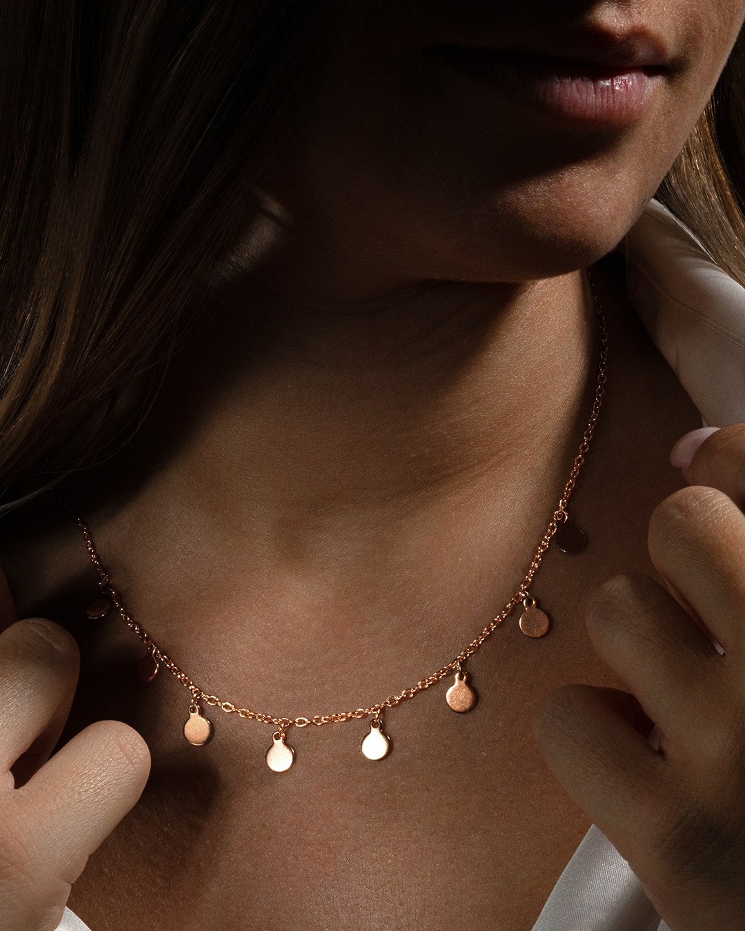 Der Anhänger Giulettana Rosa ist eine elegante Kette mit zierlichen roséfarbenen Elementen aus Edelstahl. Die Halskette hat eine Gesamtlänge von 50 cm, mit einem Hauptteil von 43 cm und einem verstellbaren Teil von 7 cm, so dass sie sich jeder Körperform anpasst. Diese Halskette wird zu einem unverzichtbaren Accessoire, das perfekt zu ihrem Armband und anderen Schmuckstücken der Marke Anna Velazia passt.