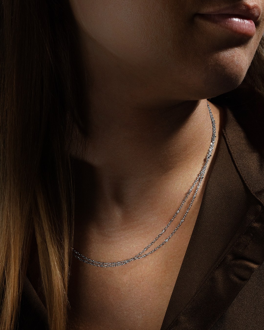 Der Anhänger Mayanina ist eine zweireihige Kette, die mit kleinen silberfarbenen Edelstahlperlen verziert ist. Die Halskette hat eine Gesamtlänge von 50 cm, mit einem Hauptteil von 43 cm und einem verstellbaren Teil von 7 cm, so dass sie sich jeder Körperform anpasst. Diese Halskette wird zu einem unverzichtbaren Accessoire, das perfekt zu ihrem Armband und anderen Schmuckstücken der Marke Anna Velazia passt.