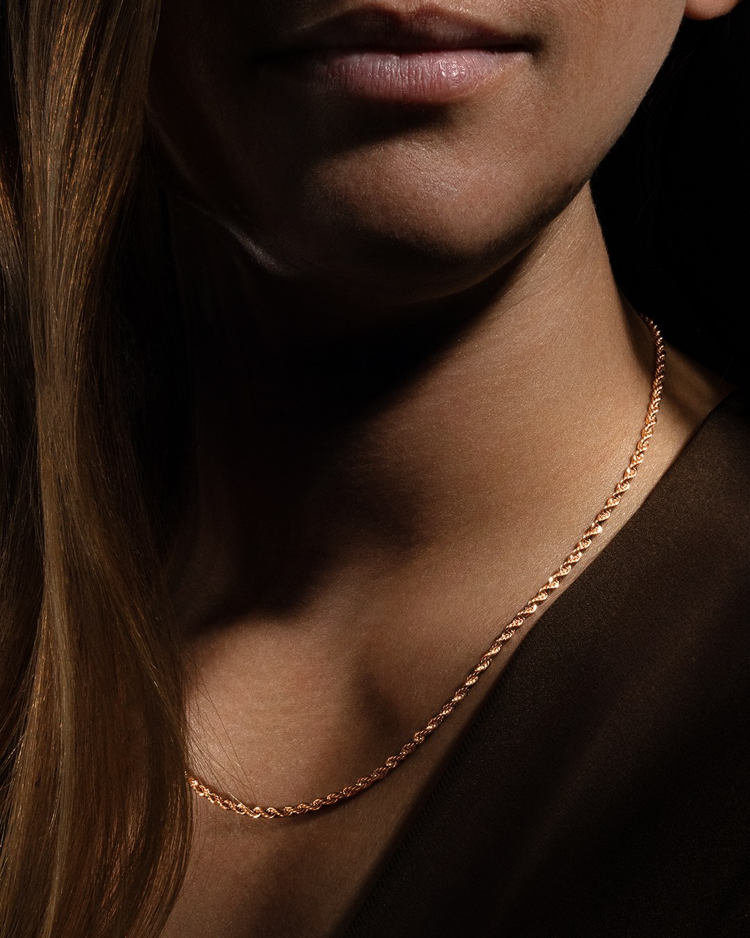 Der Anhänger Mina Rosa zeichnet sich durch eine zart geflochtene Kette aus roséfarbenem Edelstahl aus. Die Halskette hat eine Gesamtlänge von 50 cm, mit einem Hauptteil von 43 cm und einem verstellbaren Teil von 7 cm, so dass sie sich jeder Körperform anpasst. Diese Halskette wird zu einem unverzichtbaren Accessoire, das perfekt zu ihrem Armband und anderen Schmuckstücken der Marke Anna Velazia passt.