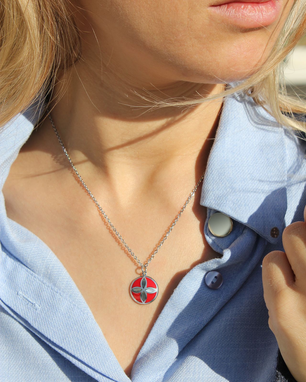 Die feine Kette passt perfekt zu seinem Medaillon und wirkt wie ein Kontrast zu der lebendigen Farbe. Die perfekte Kombination!