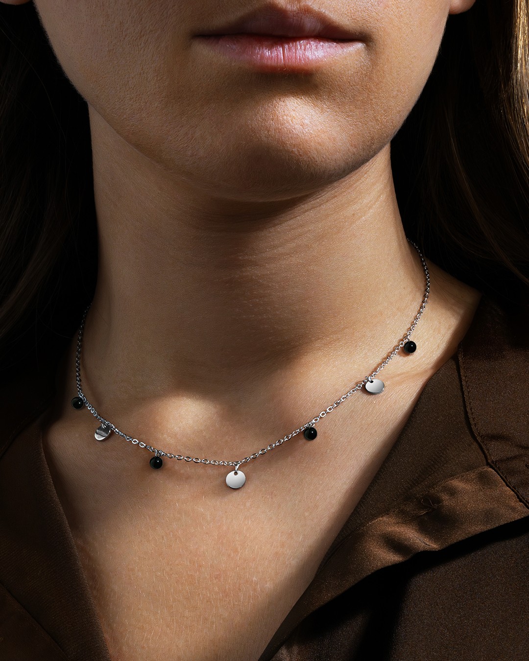 Die Halskette Toscanotto ist mit 4 Onyxen verziert, die sorgfältig zwischen den von Anna Velazia signierten Anhängern aus silberfarbenem Edelstahl angeordnet sind. Mit einer Länge von 48 cm und einem verstellbaren Teil von 6,5 cm passt sich dieses Halsband leicht Ihrem Halsumfang an. In der Steinheilkunde wird Onyx geschätzt, weil er in Stresssituationen Mut macht. Unsere Schmuckstücke bestehen aus Natursteinen und sind daher alle unterschiedlich. Daher können je nach Modell Unterschiede in Größe und Farbnuancen auftreten. Diese Unterschiede machen jeden Stein einzigartig.