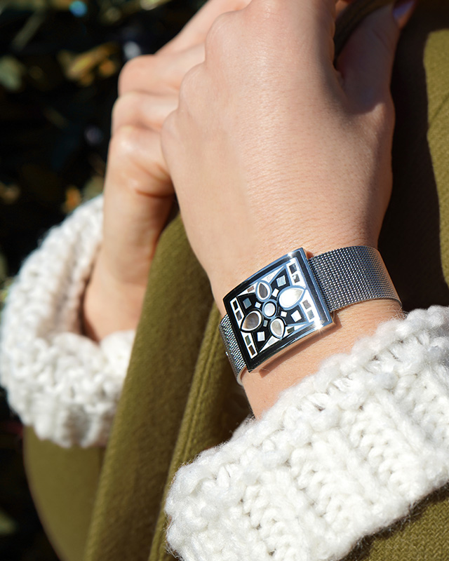 Mit einer Breite von 18 mm passt sich das Armband mit seinem Uhrenverschluss-System leicht jedem Handgelenk an.