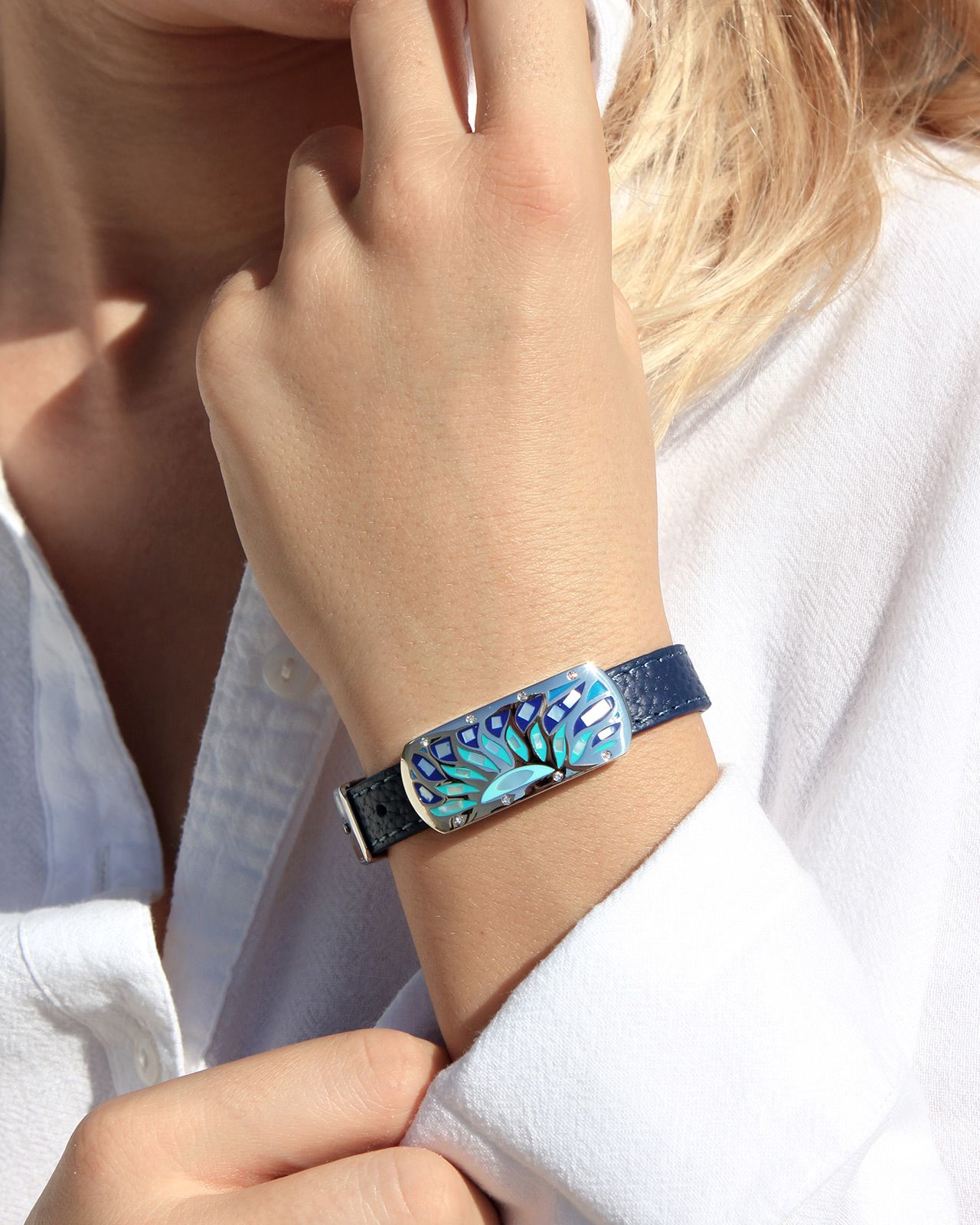 Das blau-graue Lederarmband wird Ihr Handgelenk charmant betonen.Mit einer Breite von 1cm und dem 15 bis 22cm verstellbaren Verschluss passt sich das Armband schnell an jedes Handgelenk an.