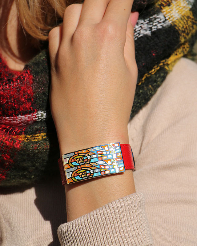 Dieses Armband unterstreicht Ihren Stil durch seine Originalität und die Möglichkeiten, es je nach Wunsch mit schicken oder lässigen Looks zu kombinieren.