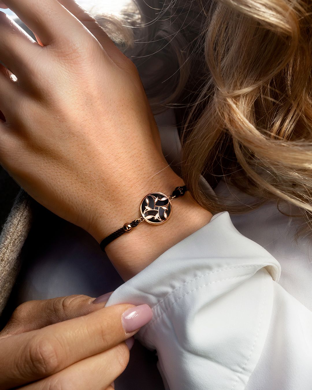 Die schwarze Farbe seines Baumwoll Armbands wird charmant durch das kontrastierende Medaillon, für einen einzigartigen Look, hervorgehoben. Es wird elegant all Ihre Looks vervollständigen!