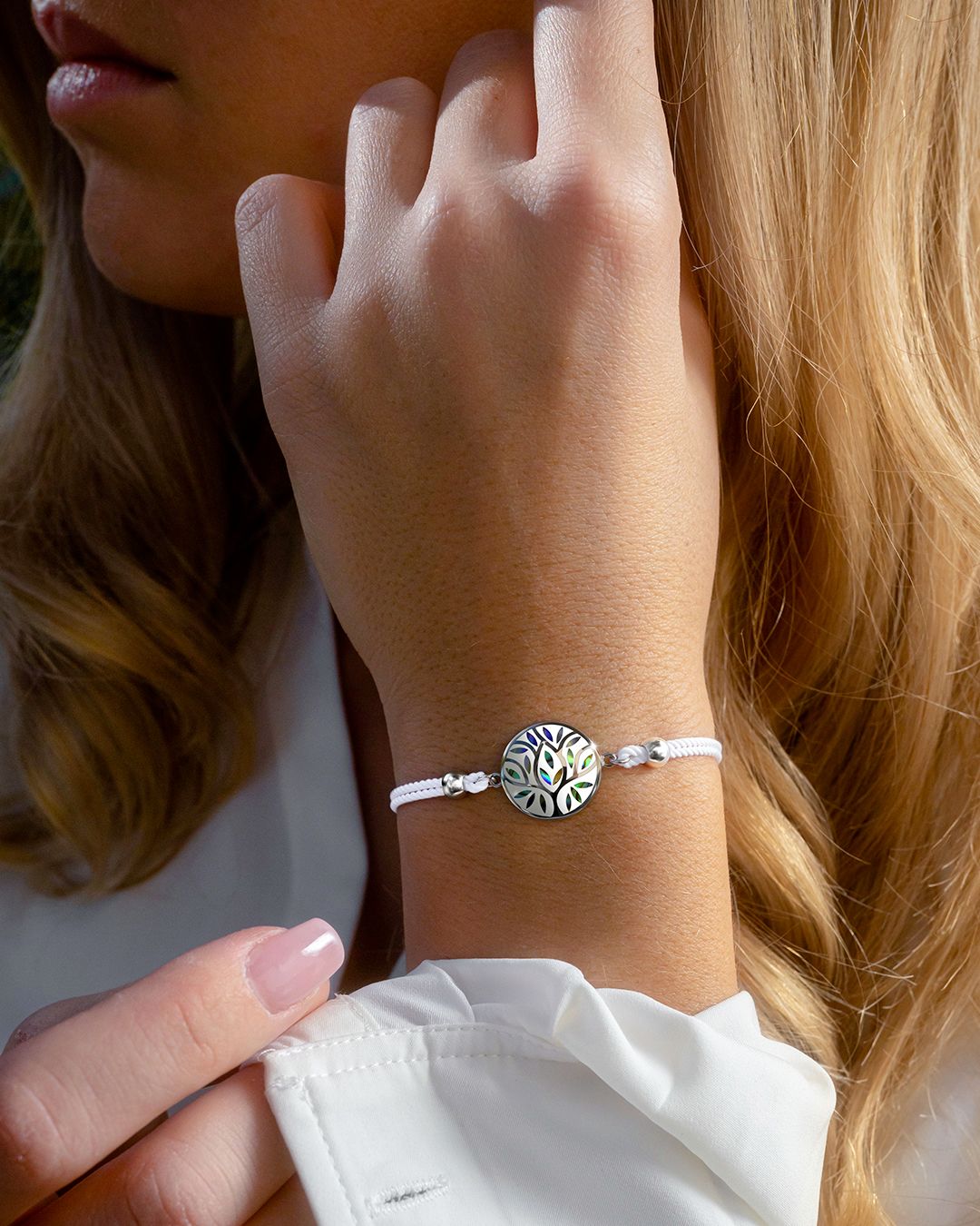 Die weisse Farbe des Baumwoll Armbands passt sich Ihren Looks perfekt an und verleiht Ihnen einen Hauch an Frische.