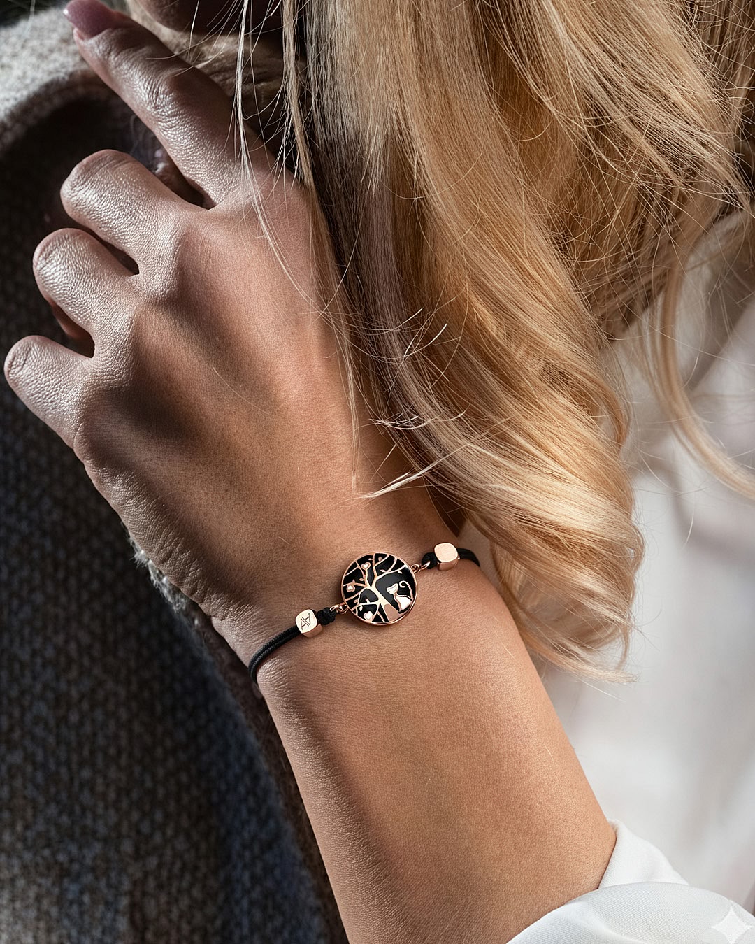 Der Kontrast zwischen dem Schwarz und der Farbe seines Edelstahls betont das Motiv, dass sich perfekt an Ihre täglichen Looks anpasst.