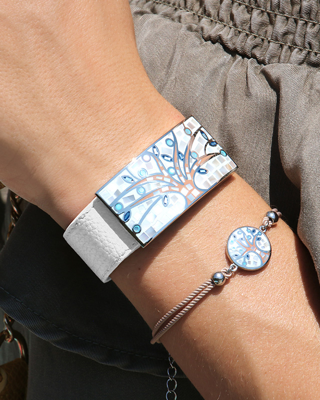 Mit einer Breite von 2 cm passt sich das Armband mit seinem selbstschließenden System sehr einfach an jedes Handgelenk an.