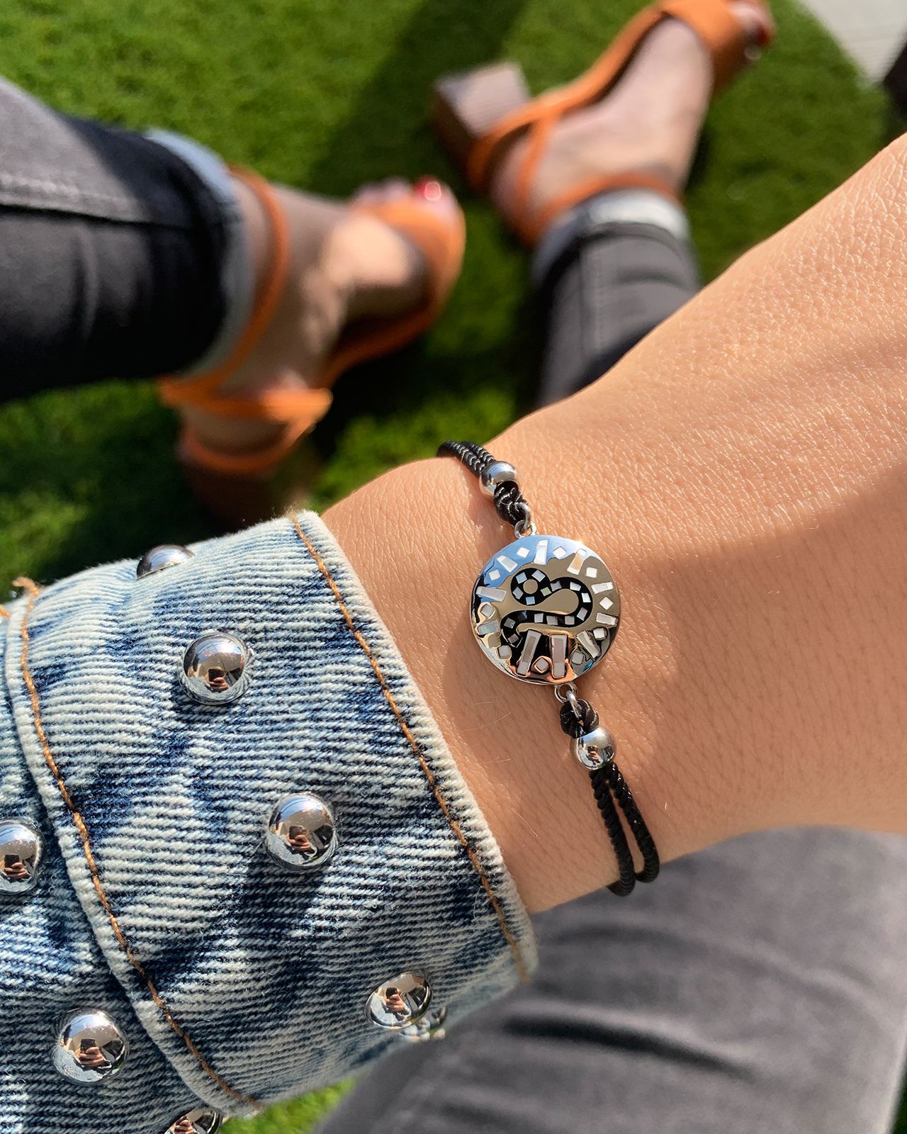 Das feine Motiv wird durch sein kleines Band aus Baumwolle hervorgehoben, das Armband ist zugleich schlicht und elegant, als Eigenschaft des Sternzeichens.