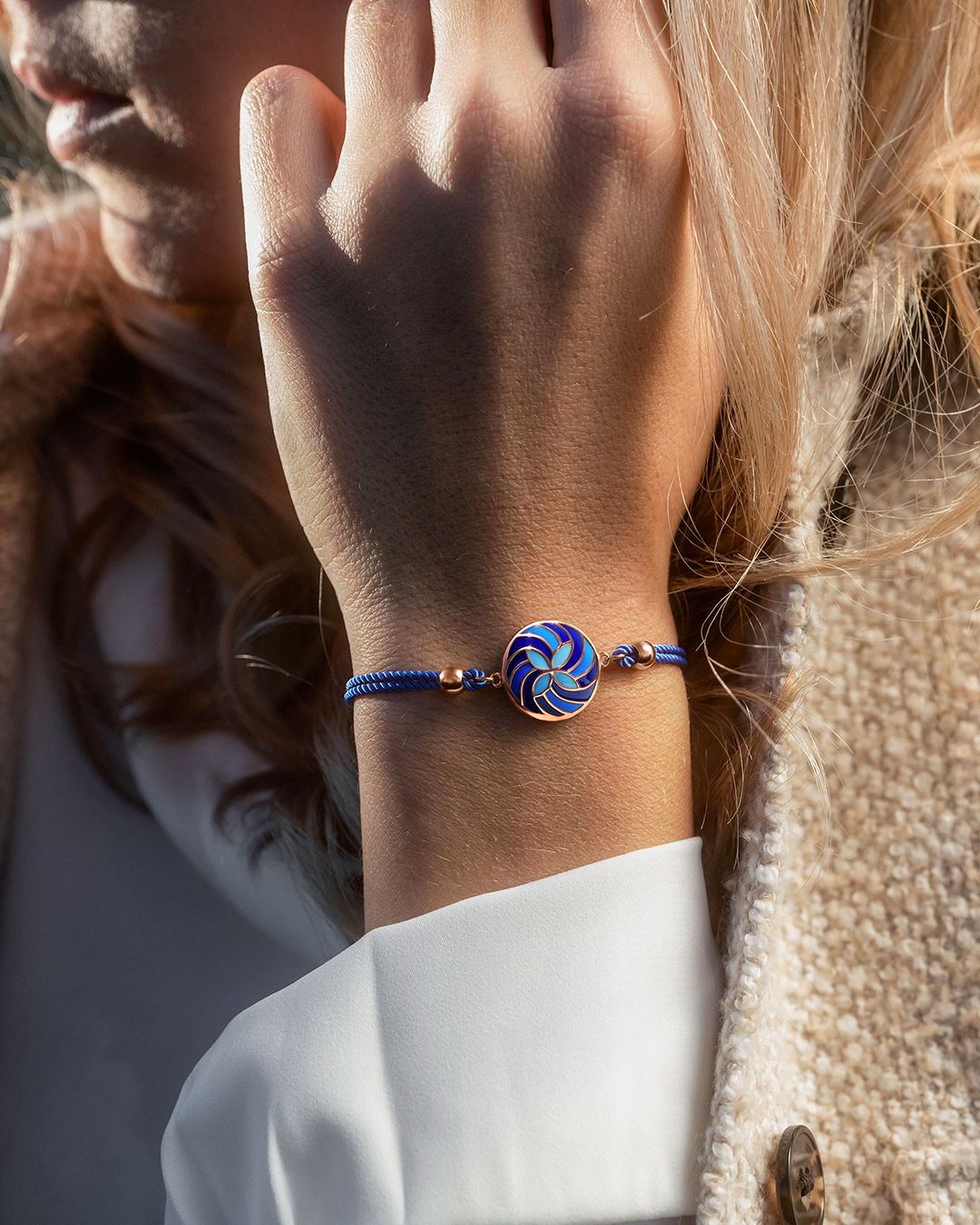 Das blaue Baumwoll Armband wird durch seine blauen Nuancen des Medaillons prächtig kontrastiert und bietet einen einzigartigen Look. Es wird Ihren Outfits einen echten Touch an Originalität verleihen.