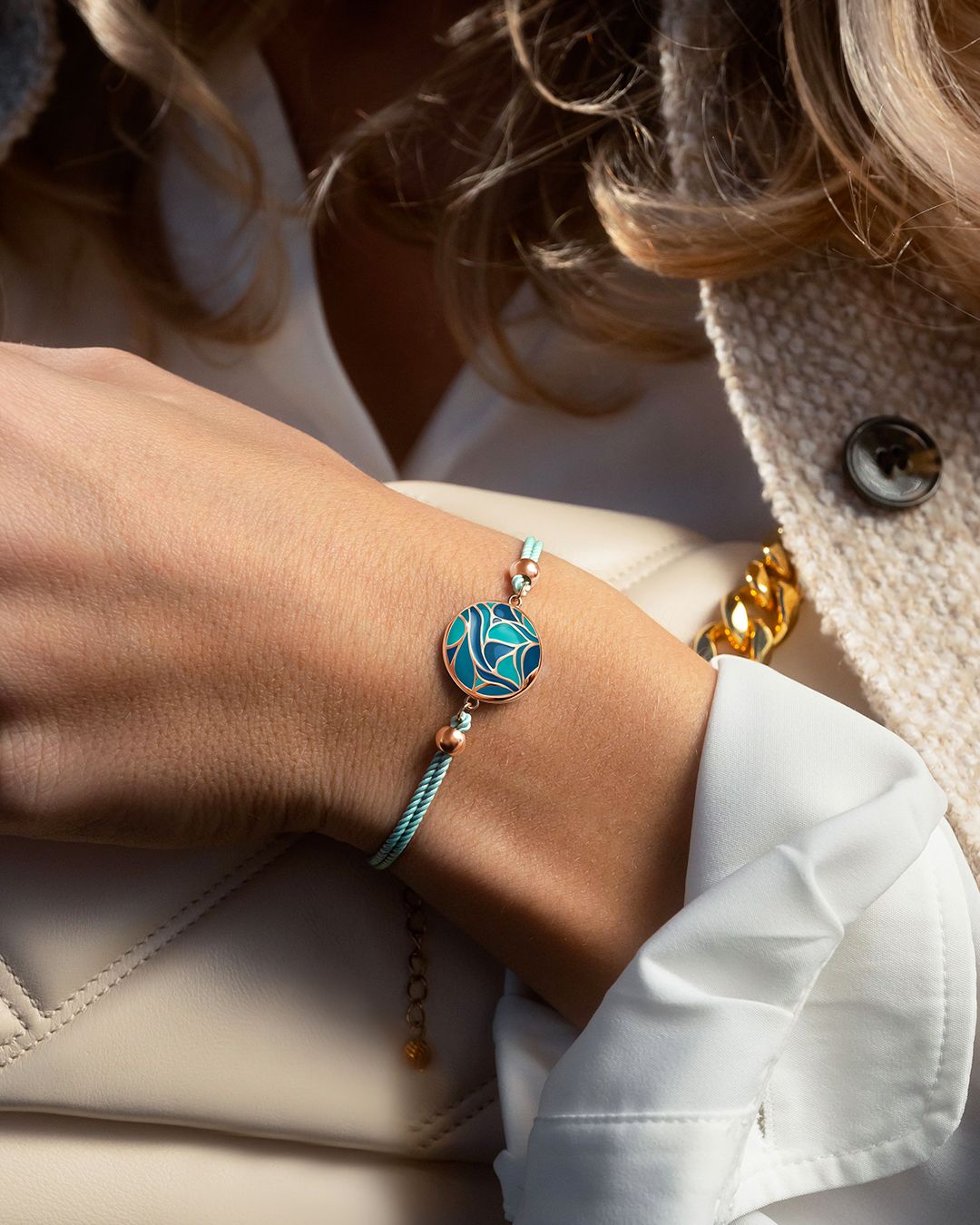 Die Verbindung seiner Farbnuancen aus Türkis, so wie seine runde Form verleihen ihm einen zeitlosen Look, der sich perfekt an all Ihre täglichen Outfits anpasst!