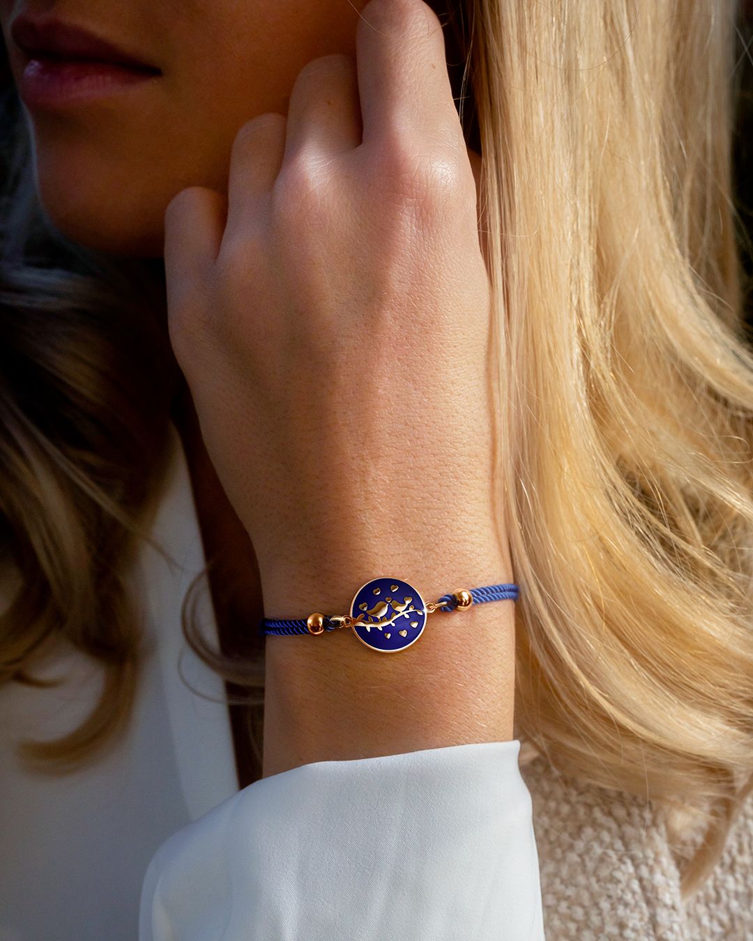 Die blaue Farbe seines Baumwoll Armbands hebt elegant das Emaille dieses Schmuckstücks hervor. Es wird sich perfekt an jedes Ihrer Outfits anpassen.