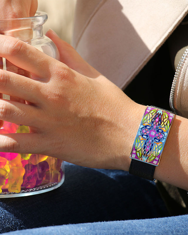 Mit einer Breite von 2 cm passt sich das Armband mit seinem selbstschließenden System sehr einfach an jedes Handgelenk an.