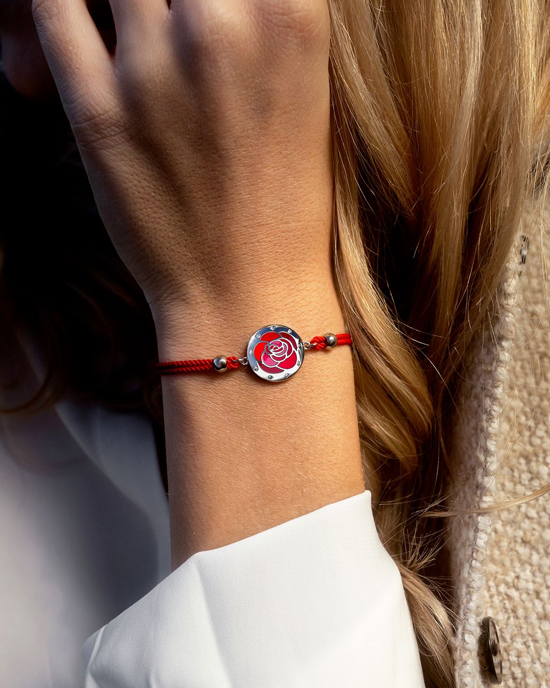 Die rote Farbe seines Baumwoll Armbands bringt Farbe in Ihre Looks.