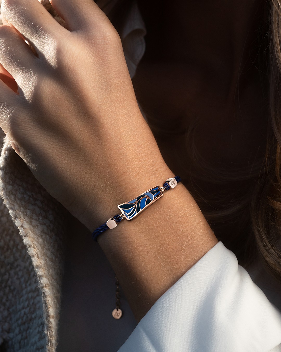 - Matière du bracelet Baumwolle dunkelblau + Kette