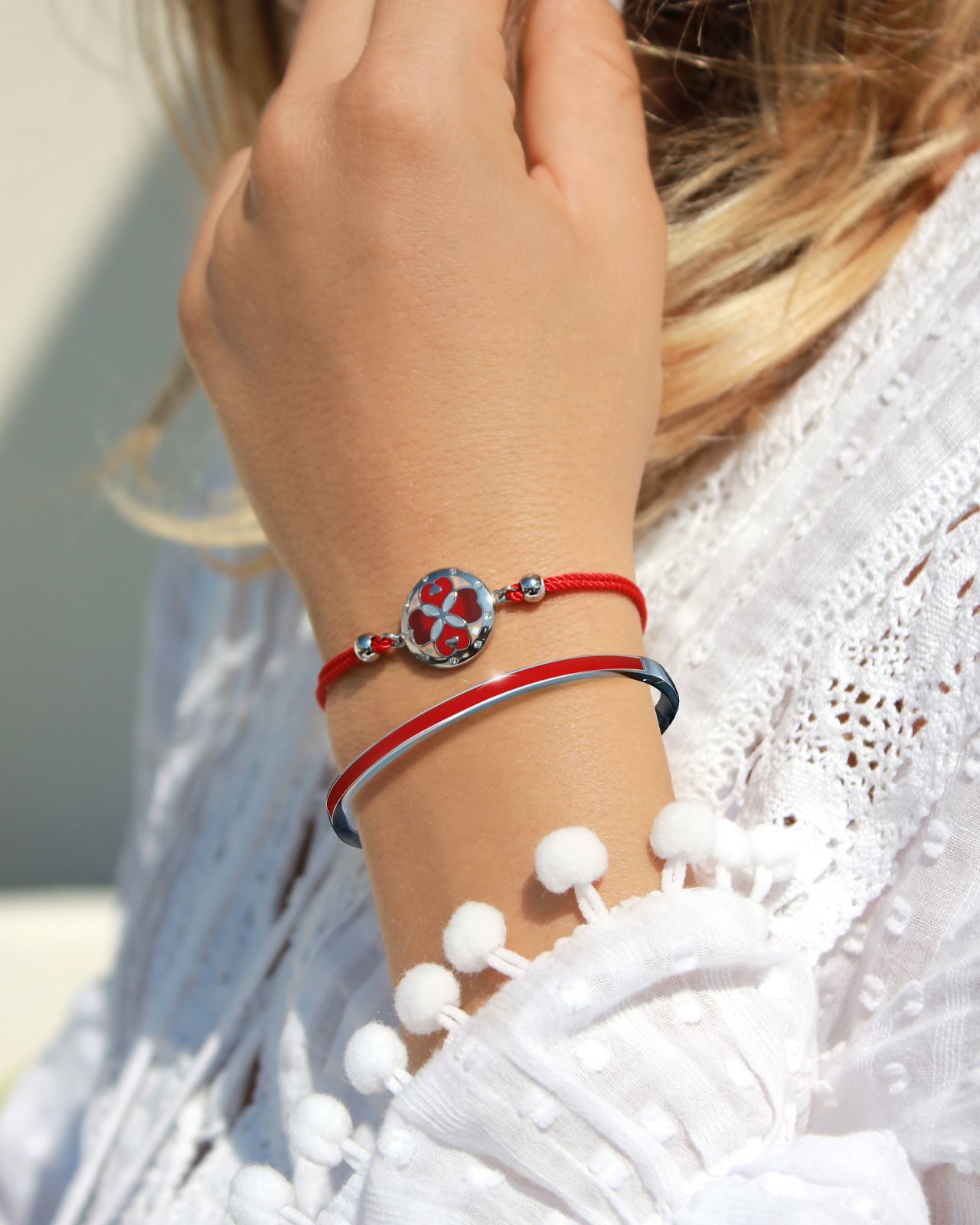 Das rot Baumwoll-Armband begleitet Ihr Outfit mit Stil und Raffinesse.