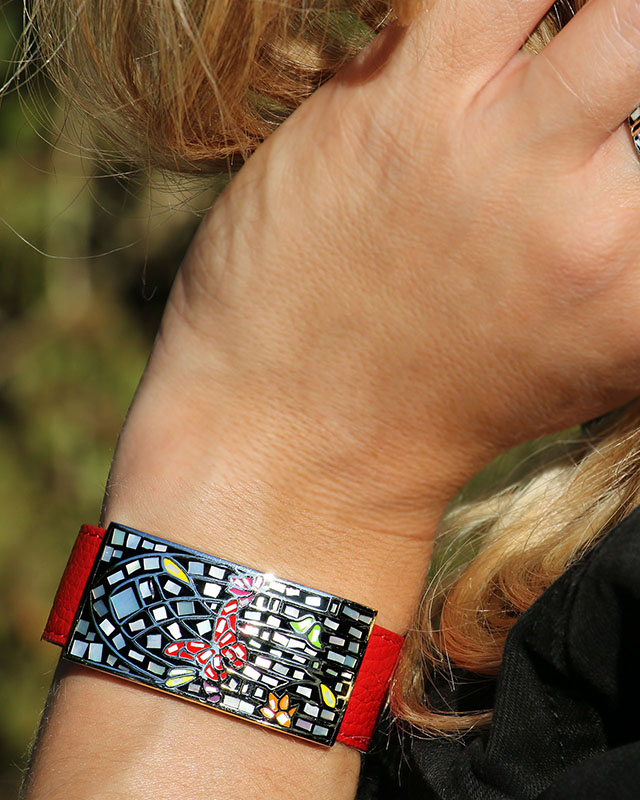 Mit einer Breite von 2 cm passt sich das Armband mit seinem selbstschließenden System sehr einfach an jedes Handgelenk an.