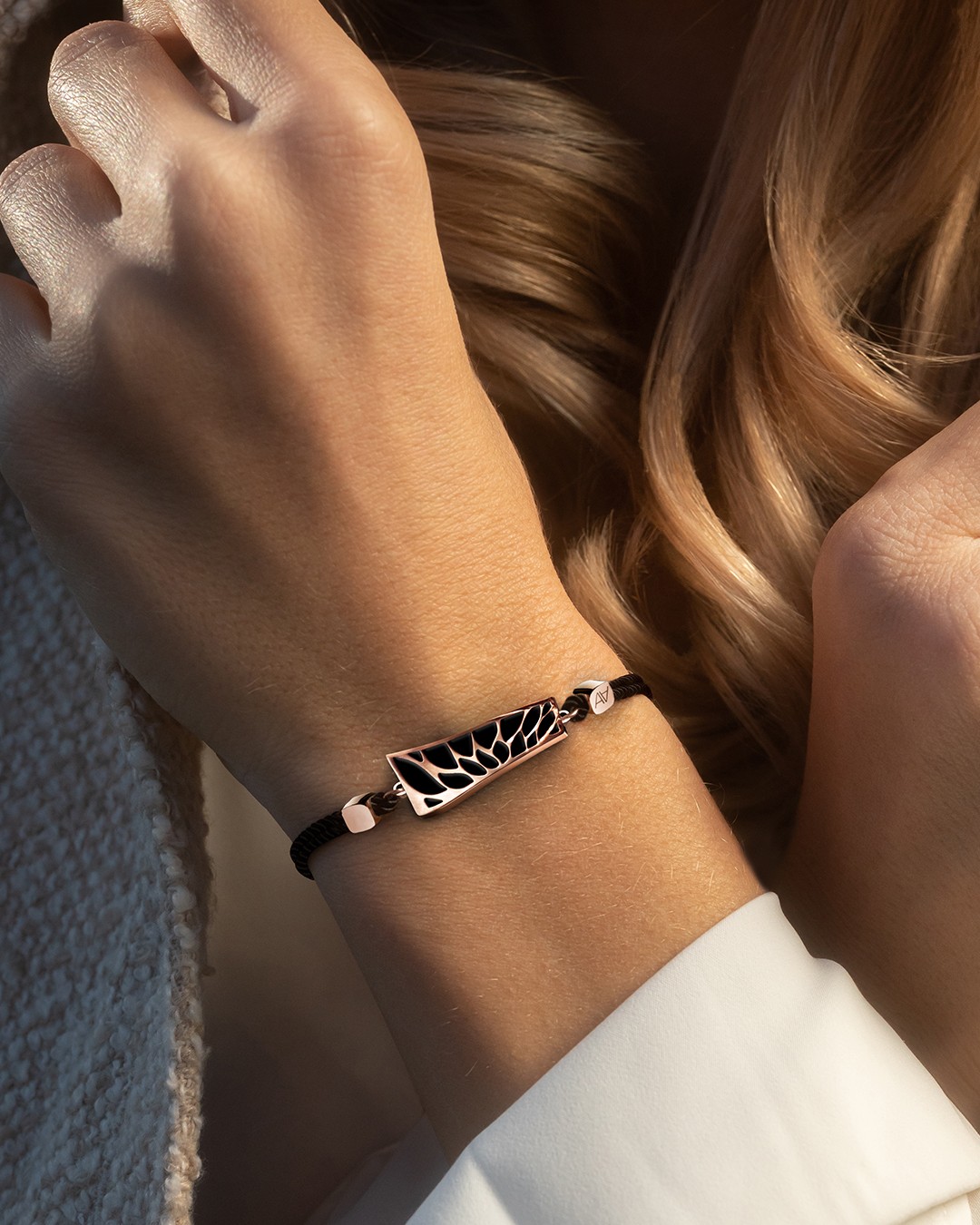 - Matière du bracelet Baumwolle schwarz + Kette