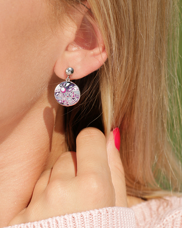 Hergestellt aus emailliertem Stahl und mit Perlmutt besetzt, begeistern sie mit ihren rosa und violetten Farben, welche die blühenden Felder und die friedliche Landschaft dieses Dorfes darstellen.