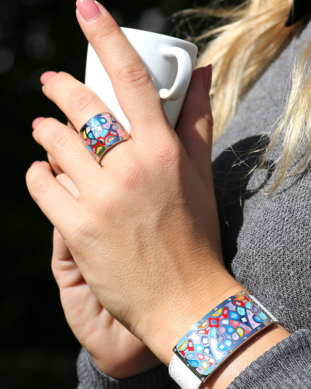 Sie können diesen Ring mit unserem Armband Ambra kombinieren, das dieselben Motive wieder aufnimmt, wodurch die beiden ein perfekt aufeinander abgestimmtes Set bilden.