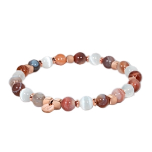 Der Anhänger Avellina besteht aus 3 wunderschönen Botswana Achat Natursteinen, die sorgfältig zwischen zwei Pastillen aus rosévergoldeten Edelstahl