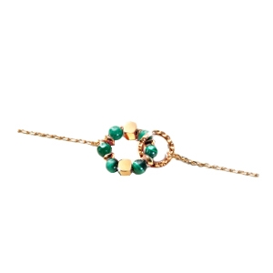 Die Halskette Umbrinia enthüllt einen edlen Anhänger in Blumenform, der vollständig aus Malachit gefertigt ist.
