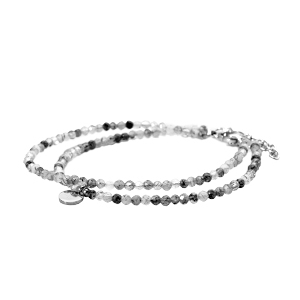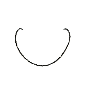 Die Halskette Rimini hebt ein zartes Choker-Design hervor, das aus feinen facettierten Rutilquarz-Perlen von 2 mm besteht.