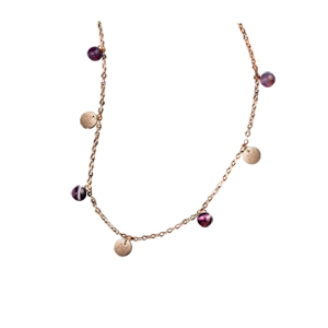 • Material des Armbands Rosefarbener Edelstahl und achatsteinen violetten
