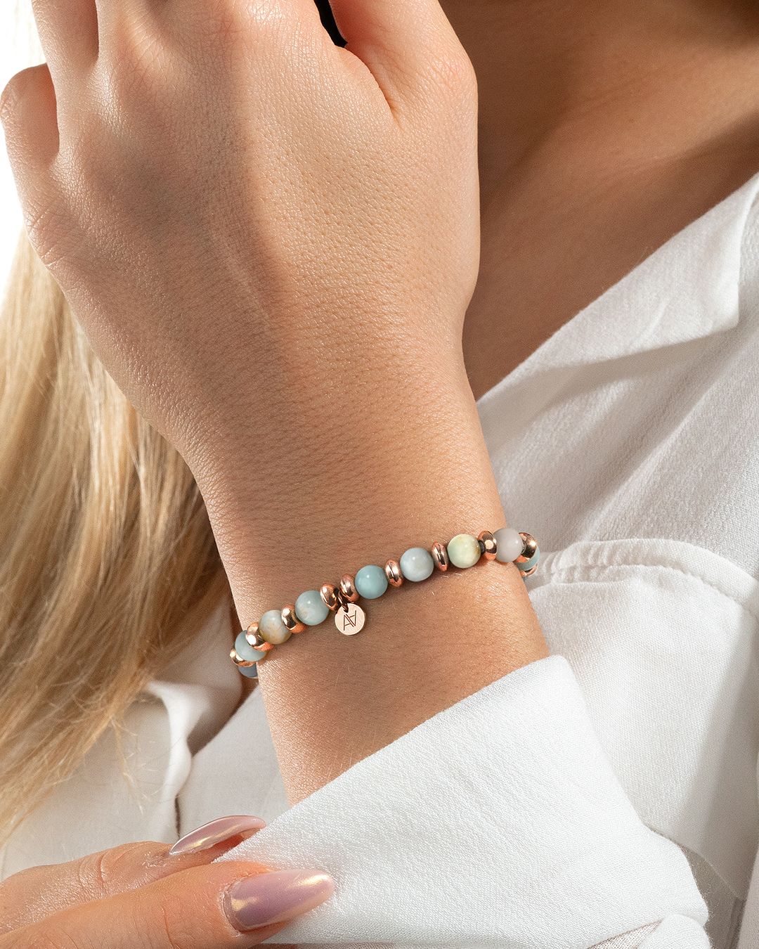 - Matière du bracelet Rosévergoldeter Edelstahl und Amazonit