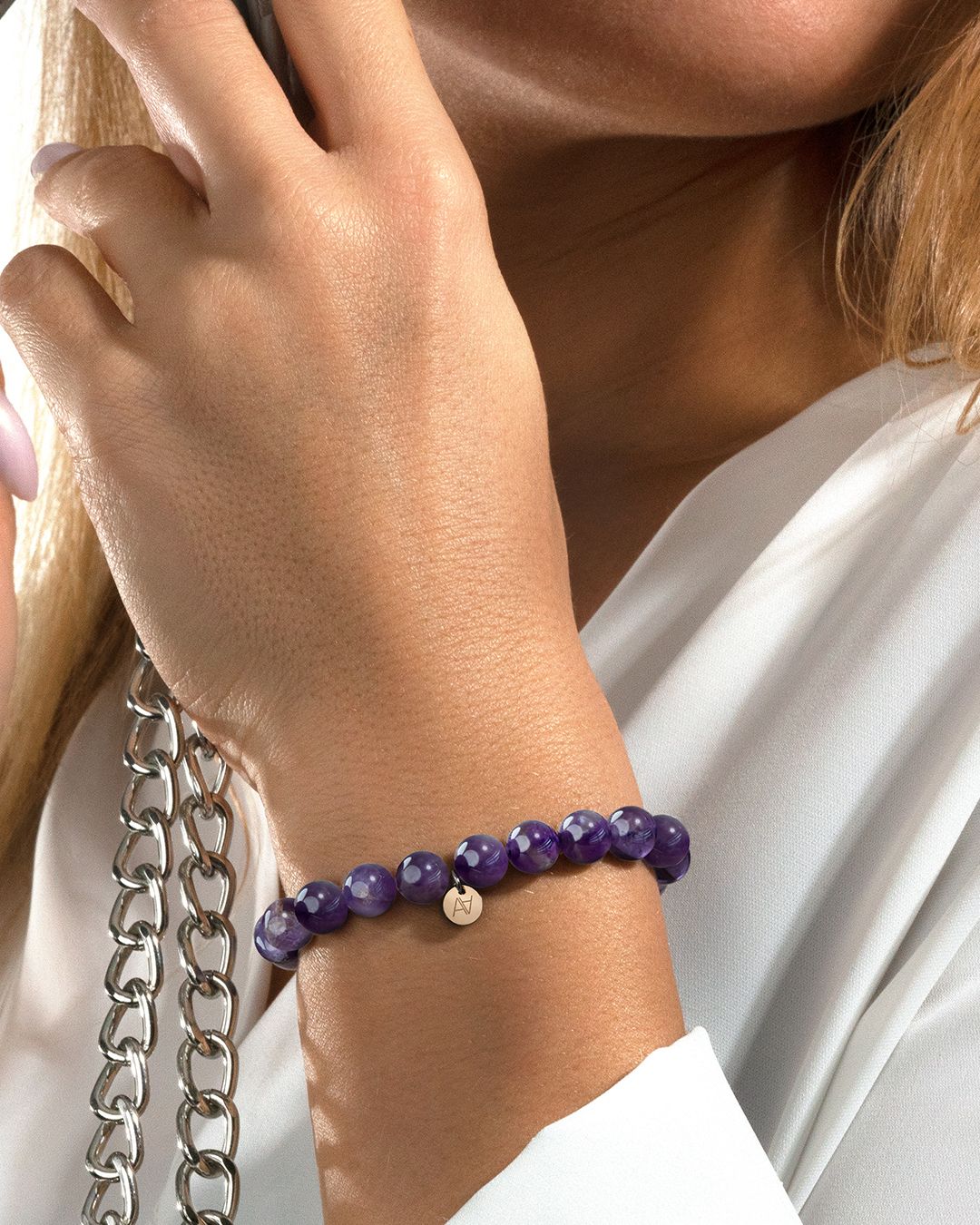 - Matière du bracelet Roséfarbener Edelstahl und amethyst