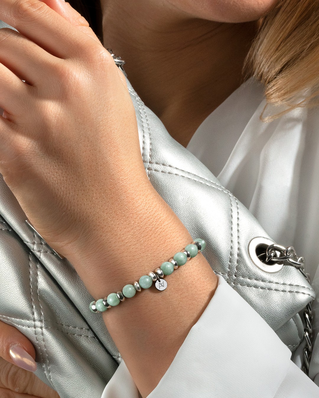 - Matière du bracelet Edelstahl und Birma-Jade