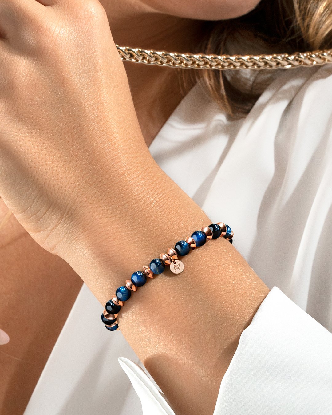 - Matière du bracelet Rosefarbener Edelstahl und blauem Tigerauge