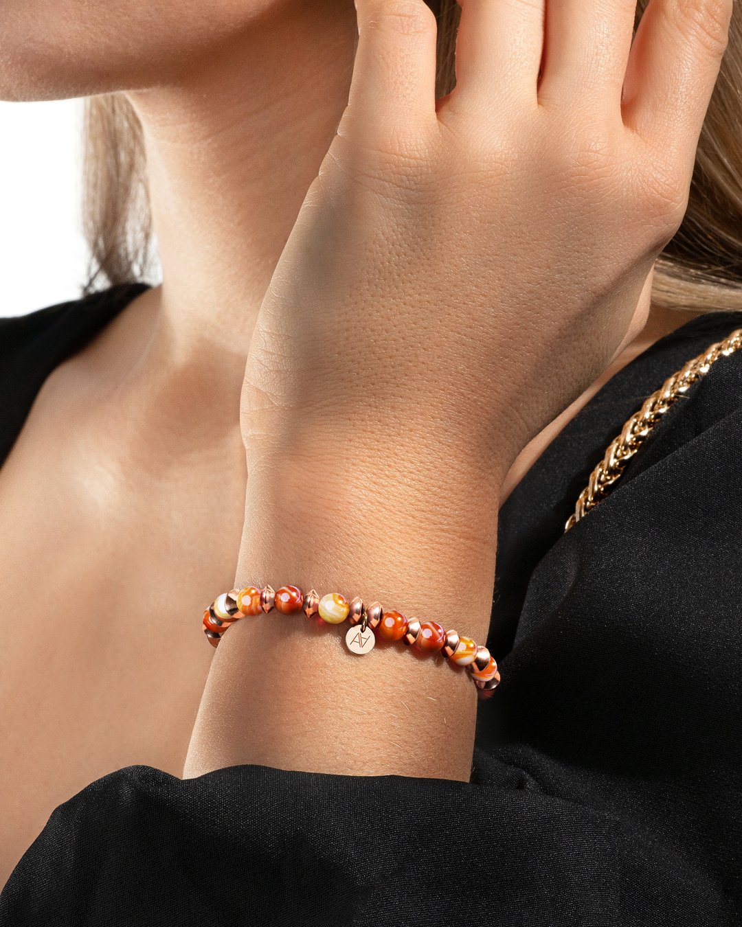- Matière du bracelet Rosefarbener Edelstahl und gebundenem Achat
