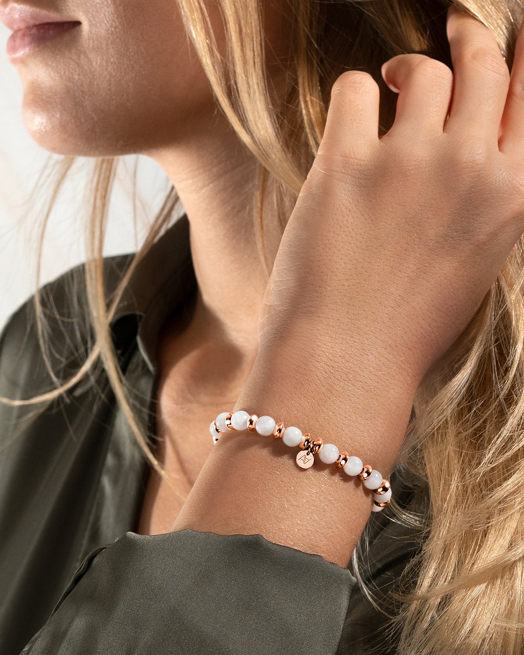 - Material des Armbands Rosévergoldeter Edelstahl und Mondstein