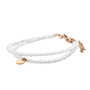 Das Vigolina-Armband besteht aus facettierten Perlen aus Mondstein, bekannt für ihre beruhigenden und intuitiven Eigenschaften, sowie aus weißen Marmor-Röhren, einem Stein, der für seine Fähigkeit geschätzt wird, Gleichgewicht und innere Harmonie zu fördern.
