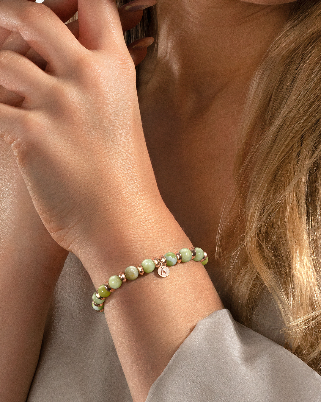 - Matière du bracelet Rosévergoldeter Edelstahl und Peridot-Jade-Stein