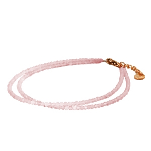 An dieser doppelten Kette sind wunderschöne facettierte Rosenquarzsteine angebracht.